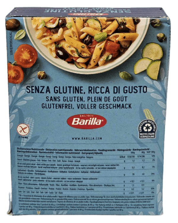 Penne Rigate SANS GLUTEN Barilla, spécialement conçues pour les personnes souffrant d'une intolérance au gluten.