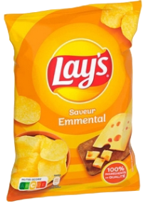 Ingrédient : Pommes de terre (62%), huiles végétales( mais, tournesol, colza en proportion variable), base aromatisante, emmental [poudre de petit-LAIT, sel, arômes (dont LAIT), sucre, fromage en poudre (LAIT), chlorure de potassium, colorant (extrait de paprika)].]