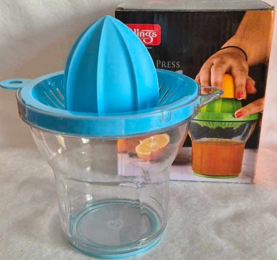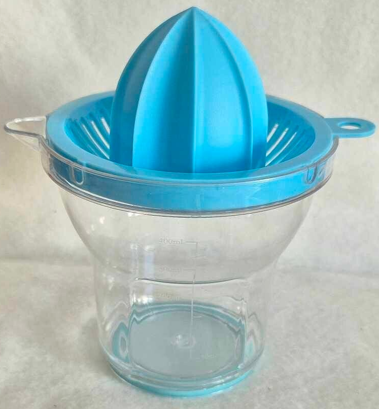 Presse-agrumes manuel et son récipient à bec verseur gradué, antidérapant et incassable, d'une contenance de 400ml.