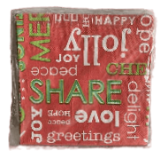 20 Serviettes en papier rouges "Love, share, cheer, jolly, joy, peace, merry, happy, hope, give, greetings"