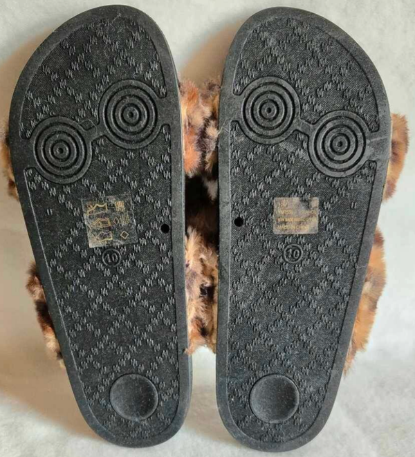 Claquettes imitation cuir avec lanière en fausse fourrure Léopard rembourée, Cape ROBBIN.